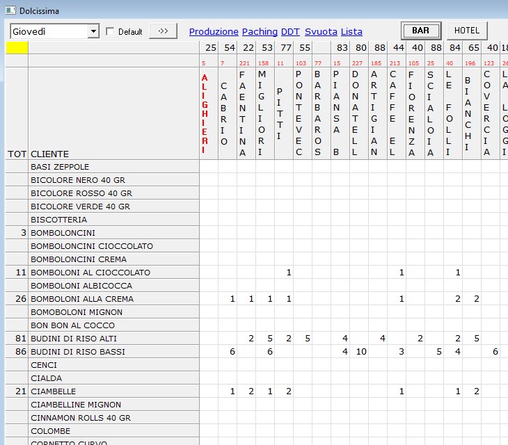 Semplifica la gestoine degli ordini della tua pasticceria inserendo le quantita in una griglia, genera automaticamente la produzione, le note di incassettamento e i ddt di consegna.